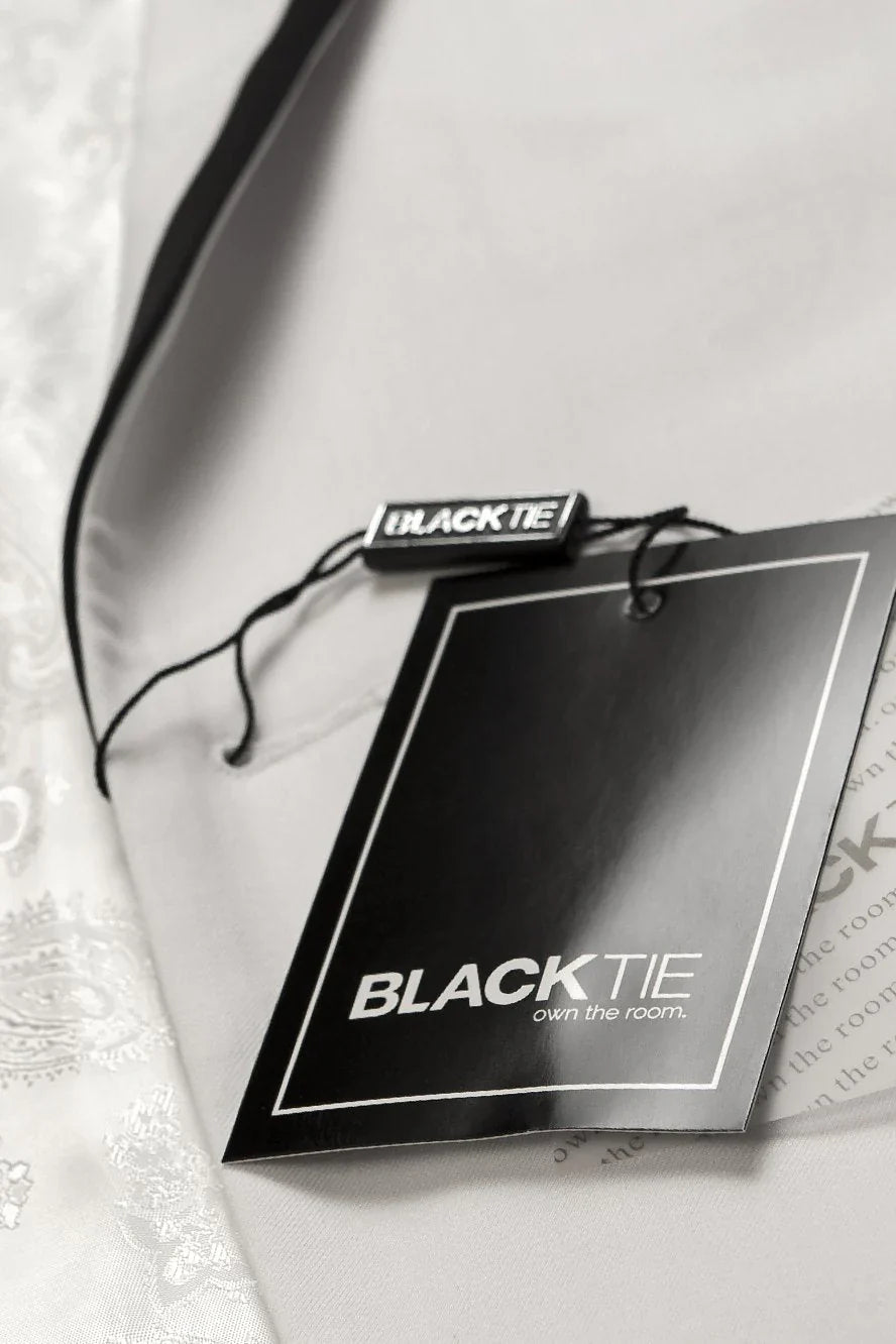 Jackets - Retail Construction "Crew" White Tuxedo Jacket Color: White with Black Trim Lapels Jacket Lapels: Shawl Buttons: 1 Material: Poly-Viscose with 5% Lycra Pattern: Solid Jacket Vents: Side Vents Fit & Sizes: Modern Fit (34 - 60) or Slim Fit (34 - 44) Sizing Tip: BLACKTIE Slim Fit is...